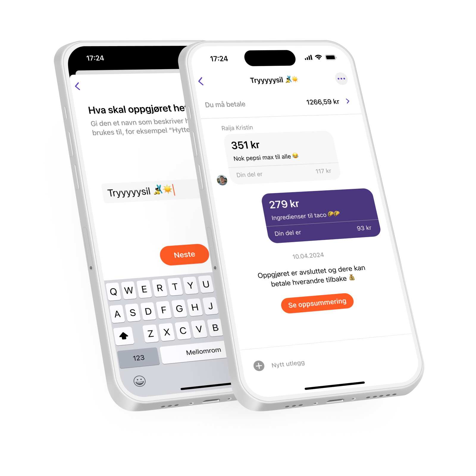 Gi oppgjøret et navn, for eksempel “Hyttetur 😎”